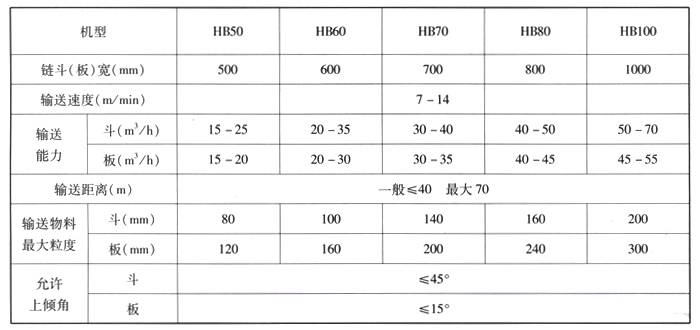 二、HB型鏈板式輸送機技術(shù)參數(shù)